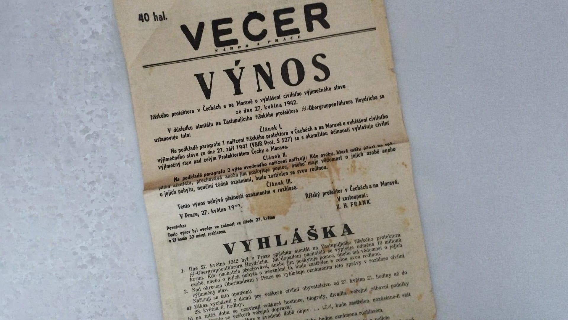 Keď sa o atentáte na Heydricha dozvedel Hitler, údajne nariadil zastreliť 10000 Čechov. Zastupujúci protektor Karl Hermann Frank však nemeckého vodcu presvedčil, aby rozkaz odvolal. Argumentoval, že na mieste činu sa našla anglická výzbroj a nie je jasné, či atentát spáchali československí parašutisti, nemeckí emigranti z Británie alebo britskí commandos. Zbrojný priemysel v Protektoráte pracoval na plné obrátky a bolo by proti nemeckým záujmom, aby sa český národ extrémne rozrušoval. Hitler nakoniec rozkaz zrušil.